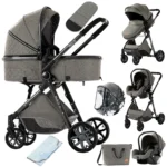 - Diseño Multifuncional: Se transforma sin esfuerzo en un asiento de coche, cuna y cochecito, brindando la versatilidad que necesitas para cada situación.