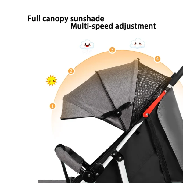 Con su sistema de plegado fácil, el Stroller for Newborn se convierte en tu compañero ideal, listo para cualquier aventura. Su diseño compacto y ligero permite transportarlo sin esfuerzo, liberándote de la lucha con carritos voluminosos que ocupan demasiado espacio. ¡La comodidad nunca fue tan accesible!